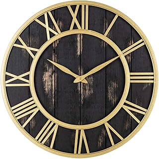 Oldtown Clocks Gold and Black Home Decor Wall Clock - Metal & Solid Wood Noiseless Antique Wall Clock (Black Gold, 18-inch)