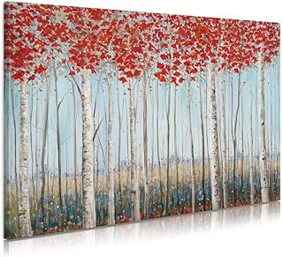 B BLINGBLING 赤い樺の木 ウォールアート:ライトブルースカイ 秋の樺のウォールアート 秋の絵画 キャンバスアート リビングルーム オフィス用 額入りですぐに掛けられる(24インチ x 36インチ x 1パネル)