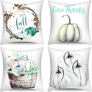 Olgaa 枕カバー コットンとリネン 枕 クッションカバー ハロウィン 感謝祭 クリスマス 秋用 18 x 18インチ 4枚