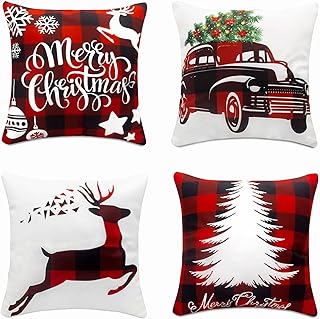 Dreamcountry クリスマス枕カバー 18 x 18インチ リネン ホリデー 枕カバー カウチ ソファ 車 ホーム クリスマス デコレーション ファームハウス 装飾 4枚セット 冬用スロー枕カバー